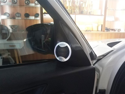 首先在前門位置,技師使用俄羅斯StP小炸彈隔音材料進行了隔音的升級,有效的抑制了門板的噪音,為汽車喇叭提供了良好的工作環境。雖然原車并無高音單元,但是卻為高音單元預留了安裝位置,將法國勁浪165KX3的高音單元安裝在門板三角位處剛好合適,中音安裝在汽車原位,中低音倒模在門板下方,這套法國勁浪165KX3三分頻喇叭,做工精致、用料精良,音色透明、音質柔美細膩,中頻飽滿豐富、低音富有彈性,而且能夠完美適配車內的聲學環境,帶來最佳的入耳效果和聲場表現。