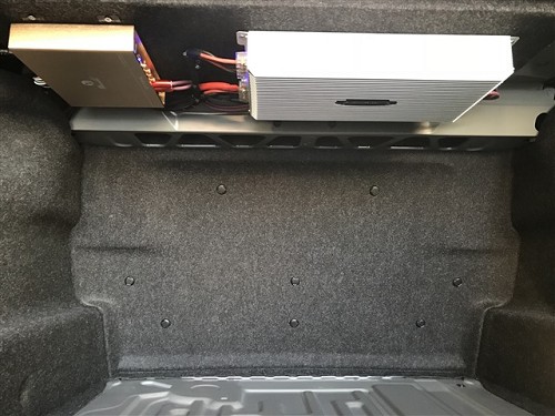 加入一臺維爾帝DSP V461A2 DSP處理器,內置功放推動前后聲場的高音、中音;美國卡頓 CA-1702功放則負責推動座椅底下安裝的低音;懸掛式安裝在尾箱,有利于散熱且節省空間。