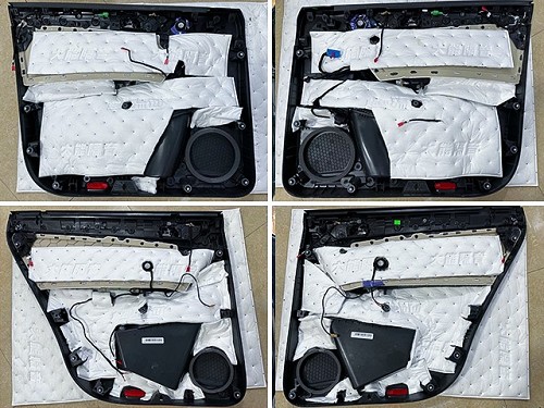 音響改裝前,我們需要對大眾途觀L進行隔音降噪處理。從拆開車門飾蓋后可以看到原車門板沒有采取任何隔音處理。將車門清理干凈后,開始用大能材料做隔音。這樣改裝能讓喇叭更好的發揮,給音響器材提供了一個類似箱體的空間,這樣喇叭發揮出來的聲音才更加飽滿有味道。