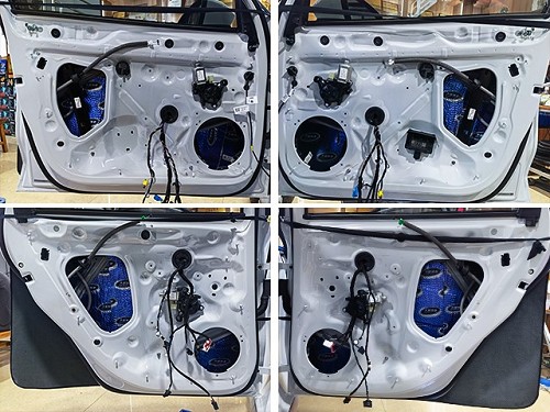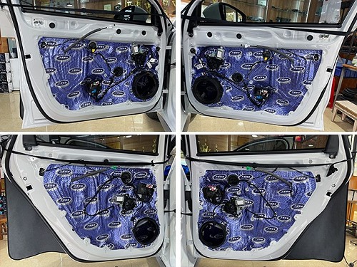 先用大能隔音給四門做內(nèi)外兩層隔音,并在門板飾蓋貼一層吸音棉