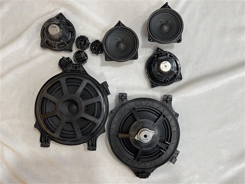 如圖可見,拆下來的原車喇叭做工粗糙且偷工減料。為此,改裝師選用法國勁浪專車專用喇叭來做音響升級,是根據奔馳原車結構特點進行設計,所有喇叭原位安裝,不破壞內飾,不影響線路。滿足車主既想提升音質,又不想破壞原車內飾的兩大要求。