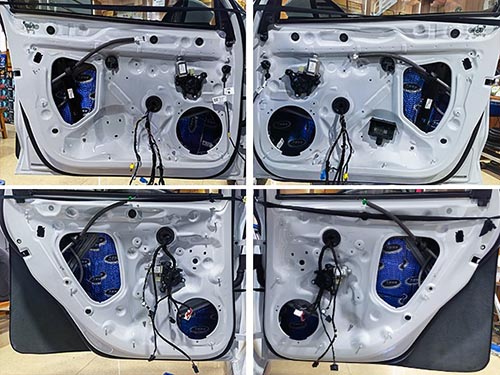 要想音質(zhì)得到整體的提升,細(xì)節(jié)方面的處理也十分重要。四門(mén)隔音對(duì)于音響改裝來(lái)說(shuō),是必不可少的一步,專業(yè)的的隔音施工能使得門(mén)板形成一個(gè)良好的音響箱體,可以提升中低頻的音響效果。使用四門(mén)大能藍(lán)金剛及吸音棉對(duì)門(mén)板進(jìn)行三層隔音降噪施工,增強(qiáng)鈑金剛性同時(shí)也為喇叭提供一個(gè)良好的發(fā)聲環(huán)境。