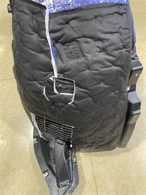 汽車行駛產(chǎn)生的路噪和胎噪也不容忽視,為此改裝師使用大能藍(lán)金剛隔音材料對(duì)輪弧做雙層隔音處理,這就相當(dāng)于切斷了路噪和胎噪傳播途徑,阻止路噪和胎噪傳入。致力為車主打造一個(gè)安靜舒適的聽(tīng)音空間!