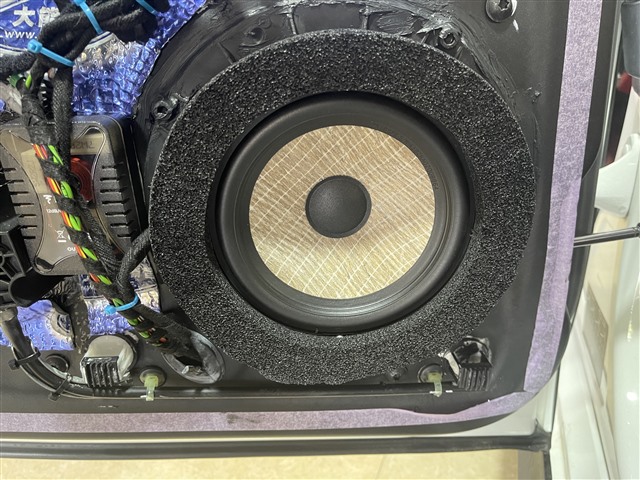 為了確保音響改裝效果達到最佳,我們從四門隔音開始。選擇了大能藍金剛隔音材料,其高密度吸音效果和卓越的隔音性能,有效消除了車內噪音和共振現象。這為后續音響器材提供了清晰穩定的音場基礎,確保車內音質更為出色。