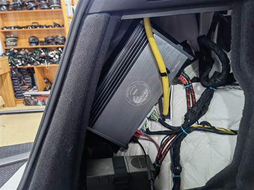 詩芬尼BO10 DSP功放安裝在尾箱側壁空隙位