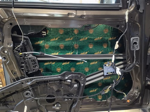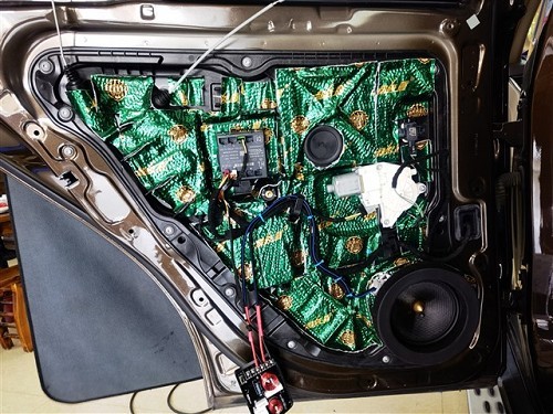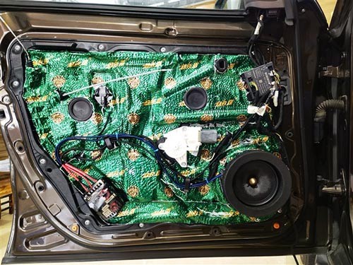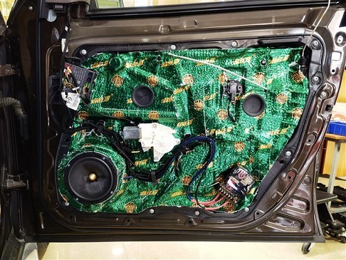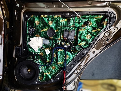 奔馳ML350的原車門板鈑金也很薄弱,喇叭在工作的狀態(tài)下容易產(chǎn)生共振噪音,所以在改裝音響之前需要先給四門做大能超級盾隔音止震處理,減少喇叭與車門之間產(chǎn)生的共振聲,使喇叭的聲音變得更純厚更集中。