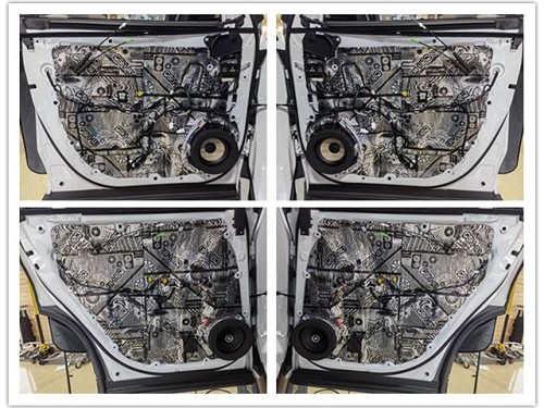 前后門板使用STP小炸彈隔音后,原位無(wú)損安裝中低音喇叭