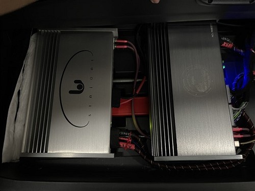兩臺(tái)功放隱藏安裝后備箱的備胎位上,完全不占用空間