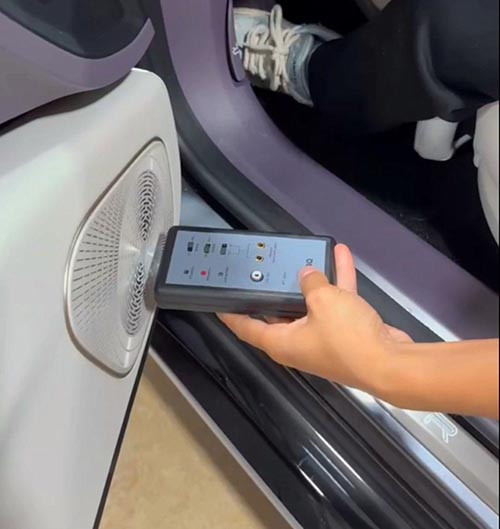 為了保證每個揚聲器的發聲一致性,我們使用了專門的相位測試儀來測量揚聲器的相位情況。相位不對會導致聲音失真或聽感不自然,而經過專業的相位調整后,車內音響的表現變得更加精準,音效也更加立體真實。
