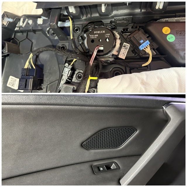 我們采用GT四門隔音材料對車門進行專業處理。通過內外雙層隔音施工,有效阻隔了行駛中的風噪和路噪,并且前后聲場統一選用弗萊德FCK-165兩分頻喇叭,高音單元被精心安裝在門板飾蓋上,背后進行牢固固定。隔音完成后,門板完美復原,外觀保持原廠狀態。