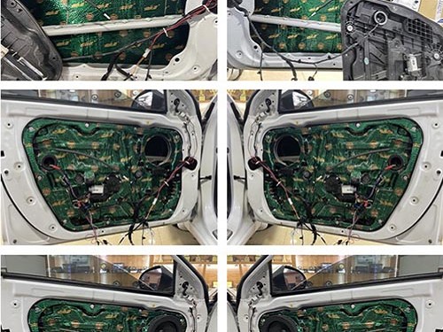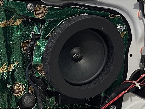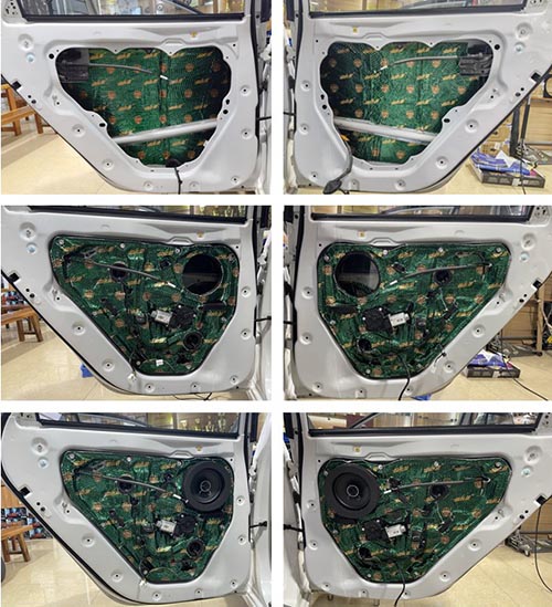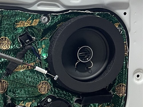 在行車途中,車內(nèi)外環(huán)境的繁復(fù)變化無(wú)疑是純凈音效的巨大挑戰(zhàn)!而且原車門板隔音措施欠缺,風(fēng)噪很容易通過(guò)門板傳入進(jìn)來(lái),所以我們的改裝師使用大能超級(jí)盾及吸音棉對(duì)門板做了三層隔音處理,這就可以防止車門共振,加固車門結(jié)構(gòu),讓門板形成了一個(gè)密封箱體,從而有效的減少了風(fēng)噪的傳入,為喇叭營(yíng)造一個(gè)出色的環(huán)境。