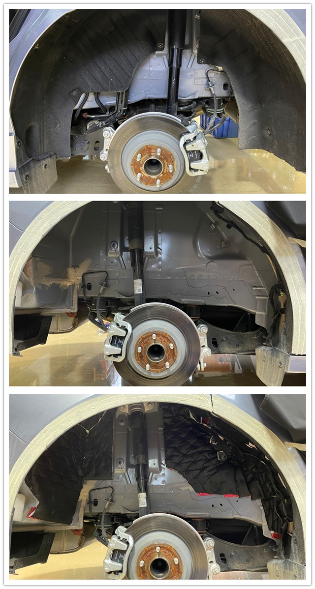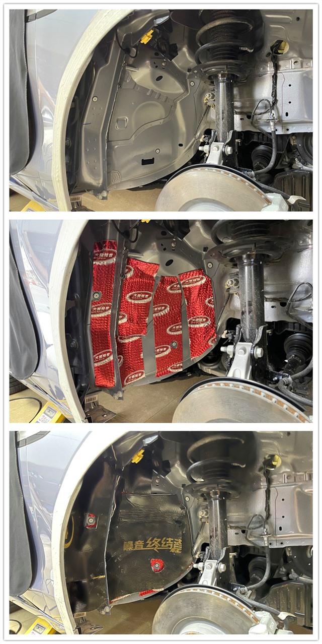 拆下來的葉子板使用大能隔音材料進(jìn)行吸音隔熱處理,吸收車輛輪胎產(chǎn)生的噪音,阻擋聲音傳遞到車廂內(nèi)。