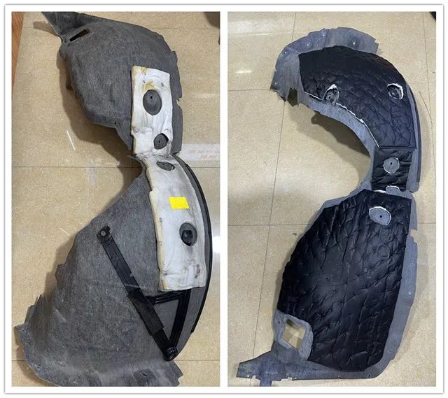根據(jù)前后輪的結(jié)構(gòu)特性,使用大能隔音材料對前后輪進(jìn)行止震隔音可以充分有效解決胎噪、路噪問題