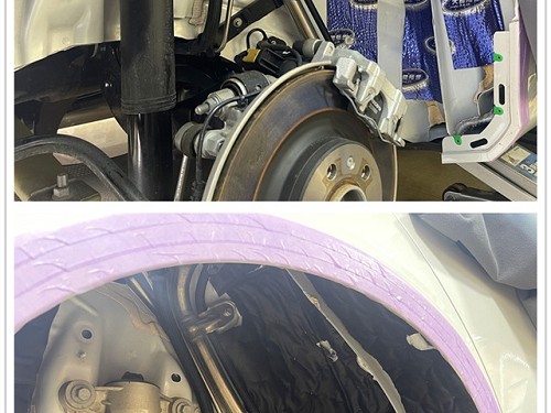 改裝師使用大能藍金剛對輪弧鈑金進行止振處理