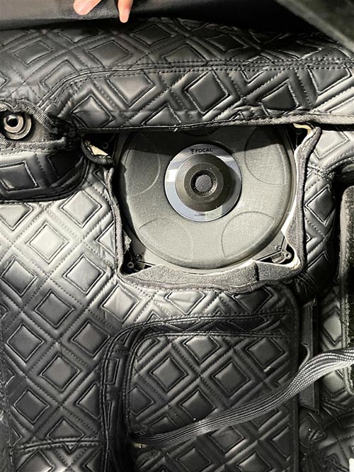 為了實現更加立體、飽滿且平衡自然的聽覺盛宴,在中置聲道部分,改裝師采用了勁浪IS BMW 100喇叭進行精準無損安裝,確保每一音符都能精確傳遞至車廂內的每一角落。