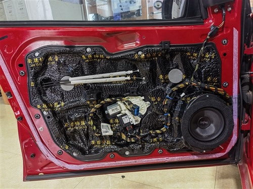 眾所周知,汽車隔音的好壞直接影響到車內音響效果的發揮。改裝師先使用安德納隔音材料對門板進行雙層隔音處理。隔音后前聲場升級一套詩芬尼S60兩分頻,詩芬尼S60高音原位無損安裝在儀表臺兩側,中低音則安裝在前門板上。這樣的安裝方式不僅保持了車內的原始美觀,同時也確保了聲音的精準傳遞和自然擴散。清晰、細膩的音質讓駕駛者和乘客在行車過程中享受到高保真的音樂體驗。