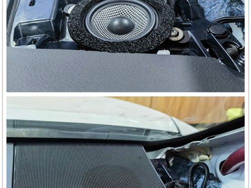 勁浪165AS3中音喇叭無(wú)損安裝在儀表臺(tái)的細(xì)節(jié)展示