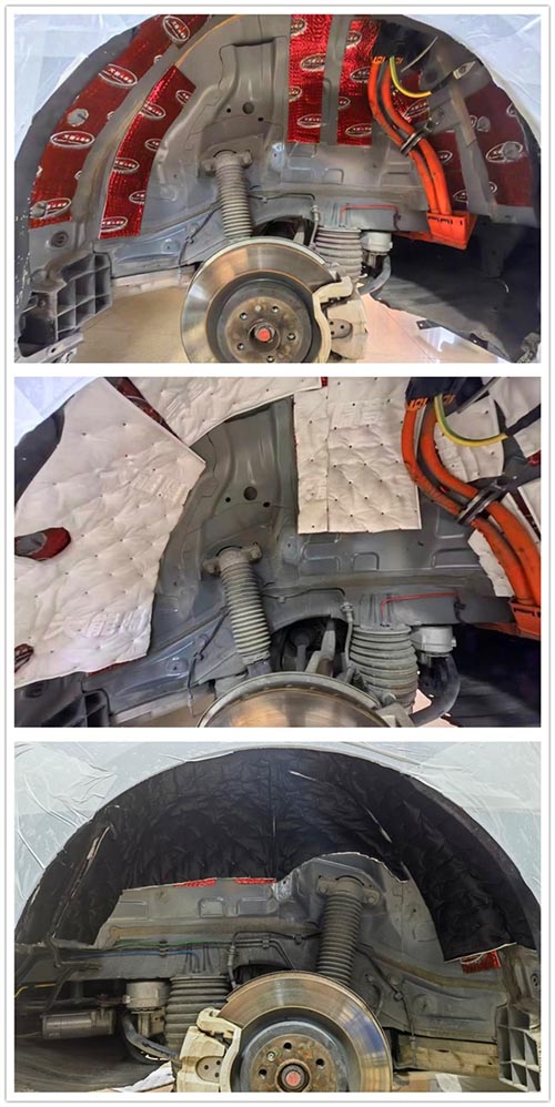 本次隔音升級的重點在于四輪,因為這是胎噪和路噪的主要來源。泉州海林專業(yè)改裝師根據(jù)極氪001的特點,制定了細(xì)致的四輪隔音方案,選用大能紅派、噪音終結(jié)者和超級溫莎棉等優(yōu)質(zhì)隔音材料,分層次進(jìn)行處理,達(dá)到理想的隔音效果。