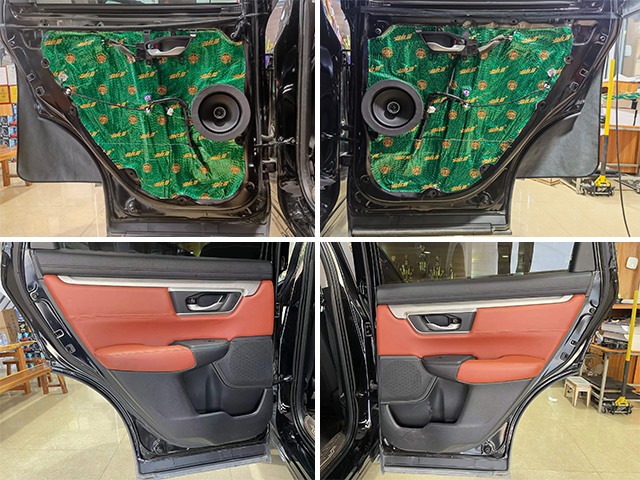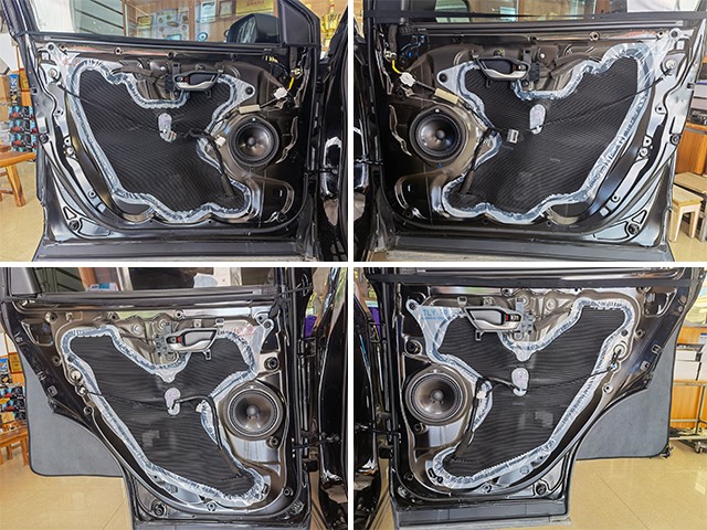 門板是風噪噪音的重災區,對此改裝技師使用大能超級盾+吸音棉對門板及飾蓋進行了三層隔音處理,還加裝了大能密封條,不僅抑制了鈑金的振動,嚴密的包裹更是阻隔了風噪的進入,解決了門板噪音問題,也為喇叭提供了一個良好的工作環境。