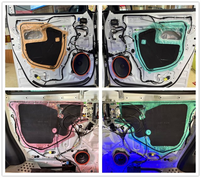 門板最容易受到外界噪音的影響,像風噪和共振,大多就是通過這里傳進來的。為了改善這一情況,改裝師先在門板貼上雙層大能紅派隔音材料。強化鈑金結構,減少因震動帶來的噪音。接著,又在門板飾蓋上粘貼一層大能溫莎吸音棉。這種吸音棉是用柔軟而高密度的材料制成的,能有效吸收中高頻的雜音。兩種材料搭配使用,能大大提升門板的隔音效果,讓車內環境更加安靜、舒適。
