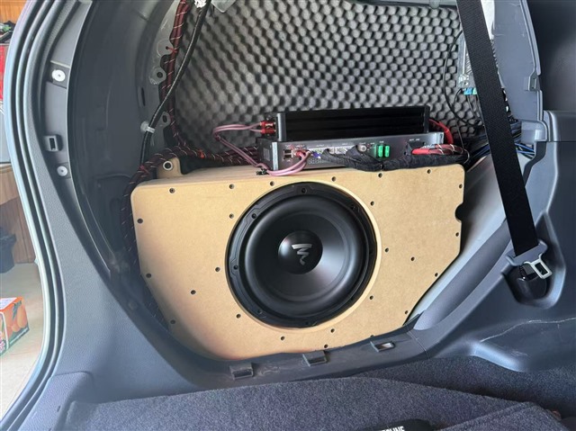 動力方面,詩芬尼BO10 DSP功放不僅為各喇叭提供了穩定的功率輸出,其強大的DSP調音功能更能精準調校聲場定位與頻率響應,讓音樂細節清晰可辨。弗萊德FD-1低音功放則專門驅動勁浪SUB 10低音單元,這款低音被精心加裝箱體后安裝在尾箱側邊,與詩芬尼BO10功放一同被巧妙隱藏,尾箱飾蓋還原后,完全不影響儲物空間,實現了實用與音質的完美平衡。