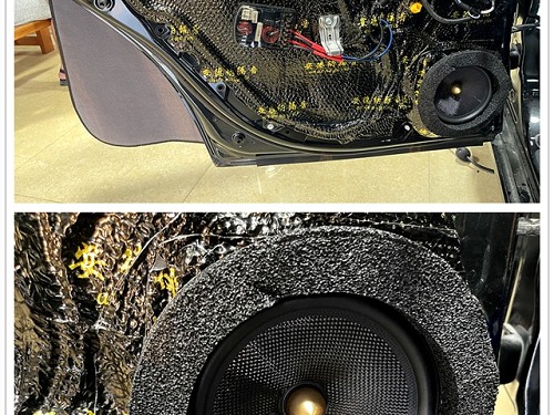 后門板使用安德納隔音材料進(jìn)行專業(yè)隔音后,原位無損安裝勁浪165A-GL中低音喇叭