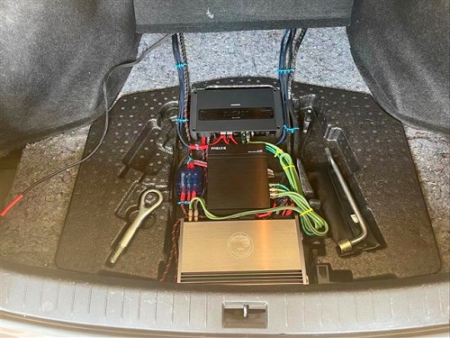聲場功放、低音功放及音源處理器并列安裝在尾箱的凹槽處,不占用日常使用空間