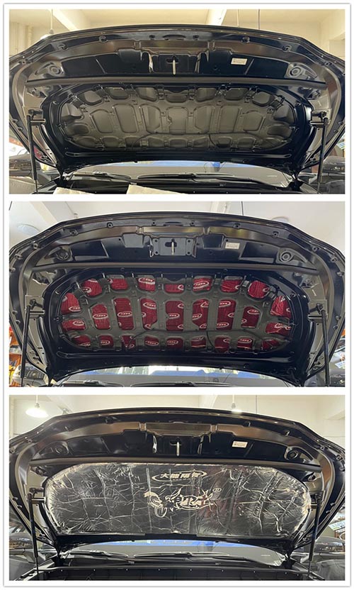 引擎蓋使用大能紅派進行第一層隔音,銀衛士進行第二層隔音
